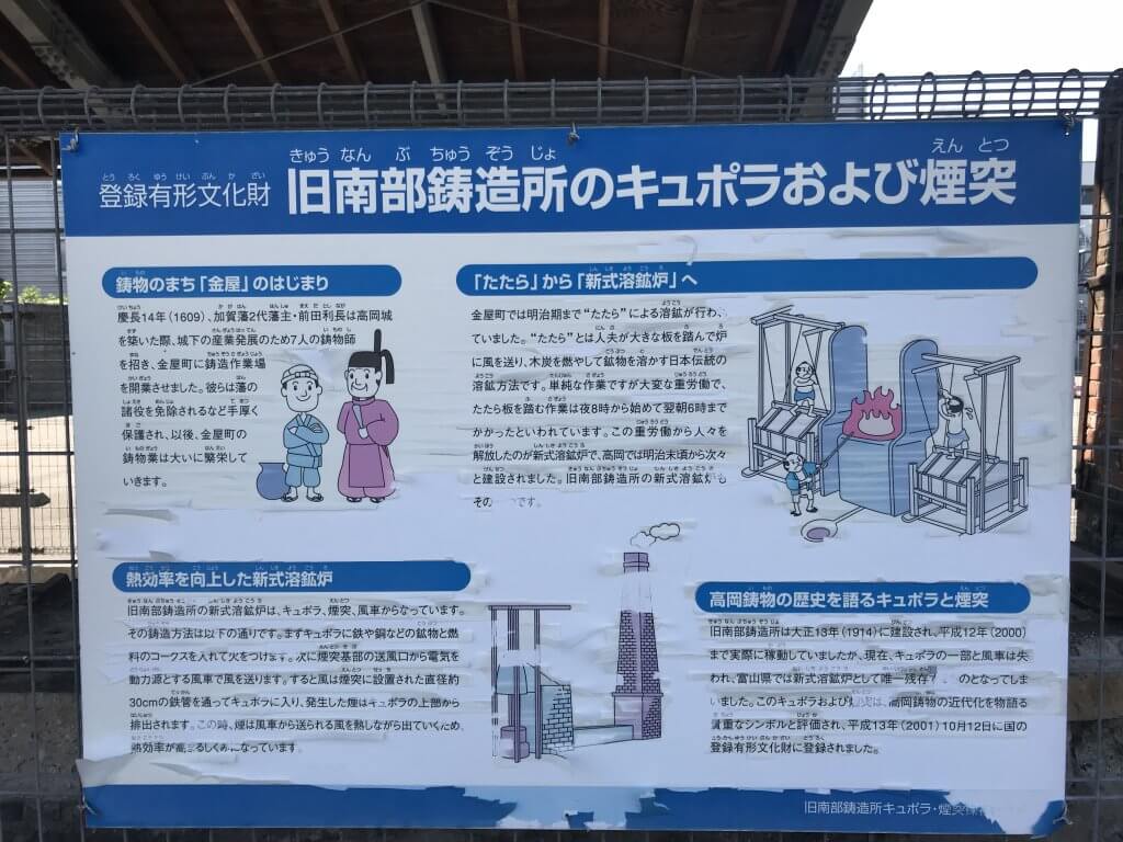 金屋町には、旧南部鋳造所さんのキュポラと煙突が残っています。